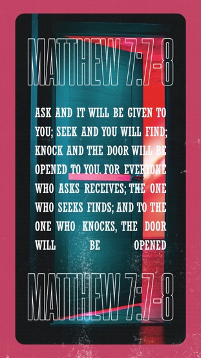 Ask, and it will be given to you; seek, and you will find; knock, and it will be opened to you. For everyone who asks receives, and the one who seeks finds, and to the one who knocks it will be opened.